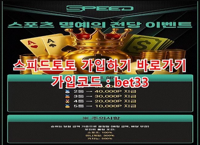 오랜 기간 운영한 메이저 토토사이트이기 때문에 운영 노하우, 자금력까지 뒷받침되어 회원들에게 최적의 배팅 환경을 제공하는 스피드벳는 지금도 다양한 이벤트 혜택을 매일매일 제공하고 있습니다.